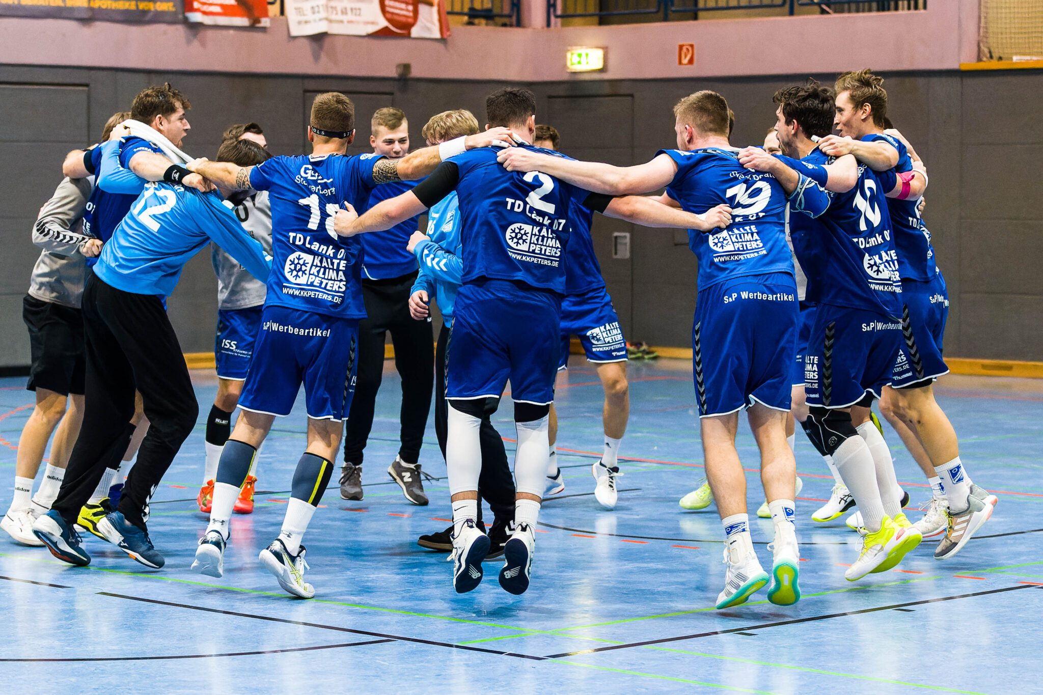 18.11.2023. TD Lank 07 1. Herren vs. SV Neukirchen 31:24 (17:16), Landesliga Herren, Forstenberghalle Meerbusch, Lank in blau, Neukirchen in gelb